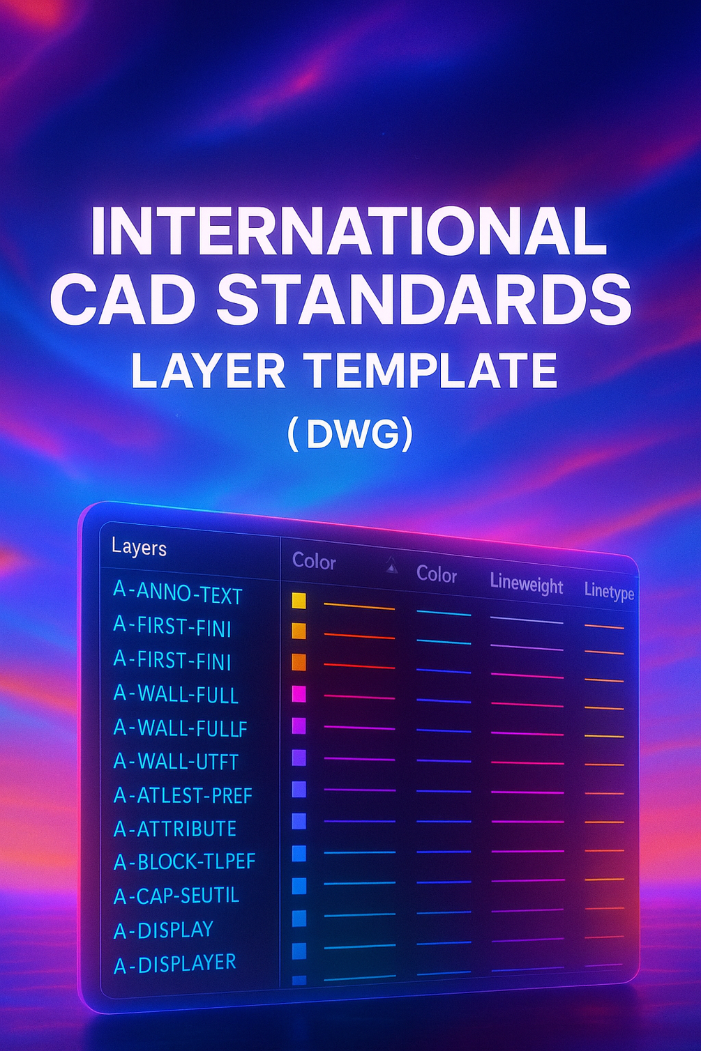 Optimize your workflow with this ready-to-use AutoCAD layer file built on international drafting standards (ISO 13567 + AIA/NCS layer conventions). Whether you're an architect, engineer, or designer, this file provides a clean, organized foundation for consistent and professional drawings across all disciplines.